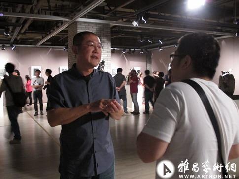 藝術(shù)家張峰與友人在現場(chǎng),正侃侃而談。