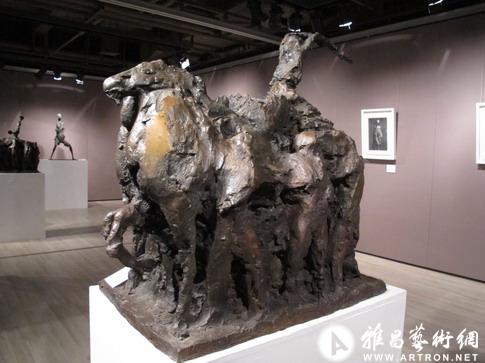 雅昌藝術(shù)網(wǎng)訊(羅書(shū)銀)2012年6月2日下午,張峰2012雕塑展在愛(ài)慕美術(shù)館開(kāi)幕,展覽展出了張峰近期雕塑作品,分寫(xiě)實(shí)雕塑及寫(xiě)意雕塑排列在展廳兩側,另外,還展出了部分張峰銅版畫(huà)作品。當天,作為老師的李象群也參加了展覽開(kāi)幕式。