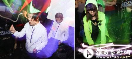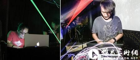 VJ楊韜現場(chǎng)視頻(他右邊是SULUMI);右:獨立音樂(lè )人陳睦璉在表演。