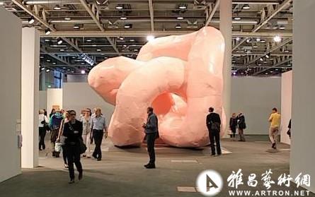 今年的“藝術(shù)無(wú)極限”部分是亮點(diǎn),高古軒畫(huà)廊的弗朗茨(Franz West)大型裝置很顯眼。弗朗茨創(chuàng )作了一個(gè)扭曲的嬰兒粉色雕塑,象征人類(lèi)臟腑。雕塑的名字為《Gekröse》譯成英文為《Bowel》,這是弗朗茨的大尺寸作品,高古軒老板拉里說(shuō),此作品在展覽第一天就售出了。