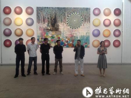 白盒子藝術(shù)館徐小國《SMAll COUNTRY》新作品展開(kāi)幕現場(chǎng)孫永增館長(cháng)(右2)致辭策展人戴卓群、藝術(shù)家王興偉、批評家顧振清、藝術(shù)家徐小國(左至右)
