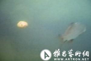 入口處媚俗的霓虹燈式餐廳招牌“Fish and Chips”使我興趣大跌。還好在進(jìn)入小型放映室后,種種猜疑被徹底消除。屏幕上,一個(gè)小小的黃色物體上下擺動(dòng),漂浮在似乎是池塘的水中。但從漂動(dòng)的幅度和畫(huà)面的質(zhì)量,很難判斷這到底是什么東西。但是突然間,有人會(huì )意識到,這是一只馬鈴薯。一只孤獨的馬鈴薯漂浮在一個(gè)池塘中。幾條路過(guò)的魚(yú),似乎對這個(gè)將共同出現在陸上炸鍋中的伙伴毫無(wú)興趣。這呈現出了魚(yú)和薯條在最原始未改變狀態(tài)下的狀態(tài)。吉他重復著(zhù)動(dòng)聽(tīng)愉悅的旋律充滿(mǎn)房間,就像一首溫柔的搖籃曲。