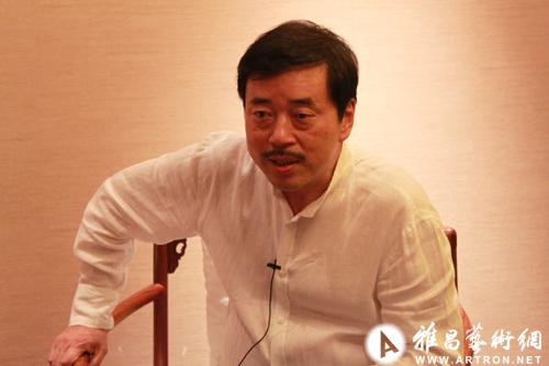 “陳子君是一個(gè)特別有才華的女藝術(shù)家,首先我們可以通過(guò)她的畫(huà)理解到這個(gè)藝術(shù)家是一個(gè)具有很深厚的童子功,我們講童子功的一個(gè)藝術(shù)家,就是她有很強的造型能力,令人羨慕的造型能力,她有很敏感的對色彩把握的能力,同時(shí)她還有一種非常懂得如何處理畫(huà)面的一種能力,這都是陳子君的一個(gè)本領(lǐng),她的本事,這跟她有十一年的藝術(shù)學(xué)習有關(guān),從附中一直到研究生這么一個(gè)學(xué)習階段有關(guān),她打下了良好的造型的基礎,當初她在附中的時(shí)候,那個(gè)時(shí)候十四、五歲,她可以在外面寫(xiě)生,騎在墻頭上畫(huà)市場(chǎng),川流不息的市場(chǎng),她拿了一卷紙,拿著(zhù)鋼筆在那兒畫(huà),畫(huà)一上午,畫(huà)出一張兩米的畫(huà)出來(lái),千奇百怪的人物在上面,那里邊的人物熙熙攘攘全部躍然在紙上,她有這種能力。因此你看她的作品,乍一看就是一個(gè)輝煌色彩,你得走進(jìn)去看,再看下去,形象都出來(lái)了,里面有人、有鳥(niǎo)、有動(dòng)物,什么都有,開(kāi)始生動(dòng)起來(lái),開(kāi)始慢慢的像顯影一樣一個(gè)、一個(gè)地從畫(huà)面里蹦出來(lái),那種東西靠什么?就是靠幾根線(xiàn)在里邊穿插,這幾根線(xiàn)談何容易,不可小覷,這就跟我們國畫(huà)里的工筆一樣,工筆一個(gè)白描,一根線(xiàn)什么都有,空間也有了,體積也有了,神態(tài)也有了,情感也有了,都有了,就是這幾根線(xiàn)的問(wèn)題,她就具有這樣一種線(xiàn)的能力,她把所有的色彩通過(guò)線(xiàn)穿插成各種不同形象的鄰居,這就是她的能耐。她的繪畫(huà)給人感覺(jué)寫(xiě)意性很強,色彩明媚、很明亮,具有對灰顏色細分、細微分析的一個(gè)把握能力,一種狀態(tài),很活躍、很豐富,這是她的繪畫(huà)的基本要素,通過(guò)我剛才的表述,你們可以理解。我的繪畫(huà),我剛才講了是從十九世紀以前來(lái)的,它來(lái)自于那個(gè)時(shí)代的表達方法,那個(gè)時(shí)候的表達方法最重要一點(diǎn)就是穩重而集中,它不松散,它不是繽紛的,它是穩重而集中的,你可以看到畫(huà)面有一些黑色背景,灰顏色的身體突然出現一個(gè)白色的強烈的衣領(lǐng)什么之類(lèi)的東西,我感覺(jué)非常深厚的一個(gè)環(huán)境中突然跳出來(lái)像燈光一樣有一個(gè)閃亮的白點(diǎn)出來(lái),非常集中,這種繪畫(huà)跟她的繪畫(huà)是兩碼事情,完全不一樣。我這種繪畫(huà)同她的繪畫(huà)放在一塊,會(huì )產(chǎn)生一種什么感覺(jué)呢?一種轉換的感覺(jué),就是說(shuō)觀(guān)者看我的繪畫(huà)的時(shí)候,然后回到她的畫(huà)面,開(kāi)始轉換了,他不是不適應,他要轉換,有這么一個(gè)過(guò)程,這個(gè)過(guò)程會(huì )給觀(guān)眾產(chǎn)生一種豐富感,就是觀(guān)賞繪畫(huà)的一種豐富感,好像我們耳朵里邊在聽(tīng)一首西方古典音樂(lè ),突然出現一個(gè)輕巧的民族音樂(lè )的感覺(jué),他是有那種轉換的過(guò)程,會(huì )產(chǎn)生這種感覺(jué)。因為我最早感覺(jué)到跟她一起搞展覽,兩個(gè)人能不能放到一起去,因為風(fēng)格太不一樣了,上次“藝術(shù)北京”美麗道拿了幾張畫(huà)做了一些嘗試,我想你們要做這個(gè)展覽必須要做嘗試,于是他們就包了兩個(gè)攤位,展板刷成紅色做了一個(gè)嘗試,跟現在美麗道二樓一樣的顏色,結果一看把我的繪畫(huà)和她的繪畫(huà)放在一塊,我一看效果很好,實(shí)現了觀(guān)眾對作品的欣賞過(guò)程中轉換的關(guān)系,我覺(jué)得這個(gè)很有意思,不一樣的東西放在一起相互調劑了,相互互補、對比、調劑,他沒(méi)有朝相反的方向發(fā)展,而是朝正面、良性方面的發(fā)展。于是我覺(jué)得好,那這個(gè)展覽就一定要搞,而且我要拿出一些很好的作品來(lái),她也拿出很好的作品來(lái),于是就形成了現在這個(gè)展覽的面貌!