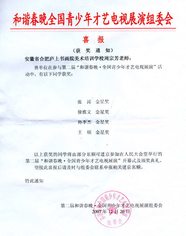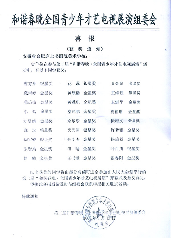 安徽省合肥廬上書(shū)畫(huà)院校喜報