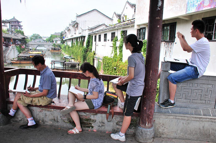 安徽廬上書(shū)畫(huà)院寫(xiě)生于2013年08月20日在古鎮三河展開(kāi)。據悉,廬上書(shū)畫(huà)院是一家集學(xué)術(shù)交流和專(zhuān)業(yè)培訓為一體的學(xué)術(shù)團體。辦學(xué)17年來(lái),已培養學(xué)員12000多名,其中1000多名優(yōu)秀學(xué)子考入中央美院、清華美院等優(yōu)秀院校,最有代表性的學(xué)生是現活躍于首都畫(huà)壇的魏嵬、夏禹。廬上書(shū)畫(huà)院師生外出寫(xiě)生已形成優(yōu)良傳統,每年都會(huì )組織學(xué)生外出寫(xiě)生,曾先后赴黃山、宏村、西遞、三河、大別山、西安、武漢、等地寫(xiě)生,極大地豐富了師生們的文化生活;開(kāi)拓了師生們的視野;增進(jìn)了師生們的友誼;加強了同學(xué)們集體意識!據安徽廬上書(shū)畫(huà)院院長(cháng)魏興無(wú)老師表示,九月份還會(huì )組織學(xué)生趕赴青島去領(lǐng)略海邊城市的無(wú)限風(fēng)光!