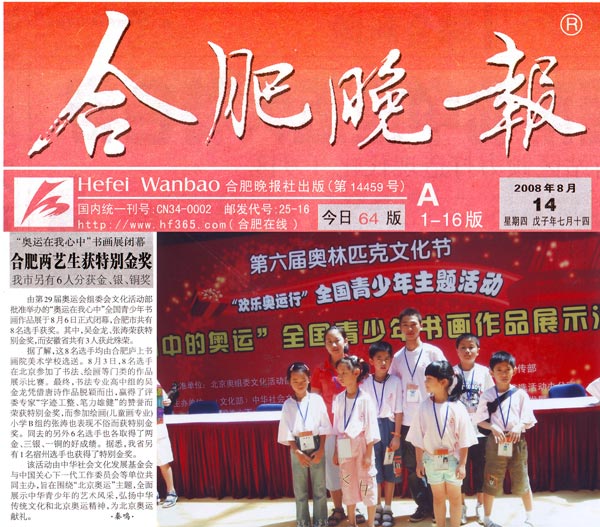 合肥晚報刊登《兩學(xué)生榮獲“歡樂(lè )奧運行”》報道